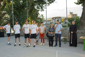 1.7.2014. - Sinoć je na ŠRC Orašina upriličeno otvorenje VI. Memorijalnog malonogometnog turnira Eugen Erjauc na kojem će nastupiti 24 muške i sedam ženskih momčadi. Nakon što je sve okupljene pozdravila Saša Galov, obratio im se zamjenik gradonačelnika Nikola Grmoja, a potom je uz molitvu odrješenja za pok. hrvatskog branitelja Eugena Erjauca sve sudionike blagoslovio fra Lukuca Vojković. Prvi udarac loptom pripao je pokojnikovoj majci Ruži Erjauc.