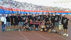 1.9.2014. - Na poziv Uprave NK Hajduk, na jučerašnji derbi u Splitu otputovali su članovi UL Crni put koji su, kao pobjednici ovogodišnjega Maratona lađa, pred utakmicu bili predstavljeni gledateljima. To nismo vidjeli u TV prijenosu jer se dogodilo neposredno pred uključenje kamera, ali će zato fotografija s Poljuda svima ostati kao trajna uspomena.