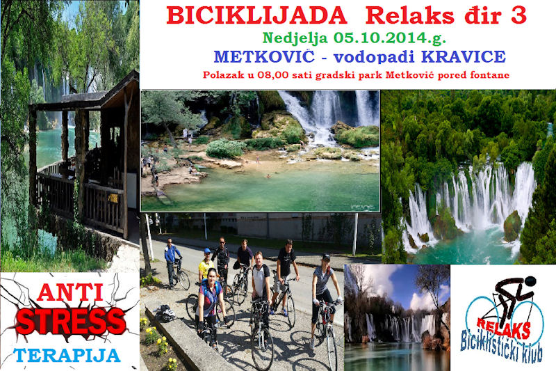 4.10.2014. - Biciklistički klub Relaks Metković organizira II. biciklijadu Relaks đir 3 na relaciji Metković - vodopadi Kravice. Polazak je u nedjelju, 5. listopada u 8 sati pokraj fontane u gradskome parku Metković.