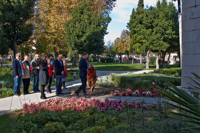 26.10.2014. - Pred spomenikom žrtvama fašističkoga terora u Gradskome parku jutros su se okupili članovi GO SDP-a Metković kako bi se polaganjem vijenca i paljenjem svijeća prisjetili događaja od ravno prije 70 godina kada su okupatorske snage napustile Metković.