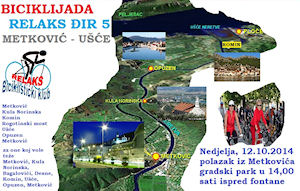 13.10.2014. - Biciklistički klub Relaks jučer je organizirao biciklijadu Relaks đir 5 na 46 km dugoj relaciji Metković – Ušće – Metković. Deset se biciklista vozilo iz Metkovića, preko Kule Norinske i Komina do Rogotinskoga mosta te na Ušće, gdje je napravljena mala zakuska. Povratak je bio preko Opuzena i Krvavca II.