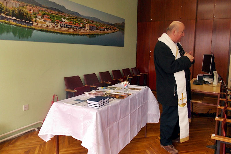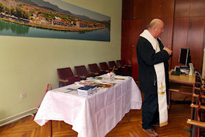 Metković, 26.12.2014. - Na Badnjak je u prostorijama PP Metković kapelan PU Dubrovačko-neretvanske Ivo Bulić obavio blagoslov i služio svetu misu članovima Policijske udruge branitelja PP Metković 1991. Nakon mise je u prostorijama Pastoralnoga centra o. Ante Gabrića, koje je Udruzi ustupio don Senko Antunović, upriličen zajednički ručak s tradicionalnim bakalarom.