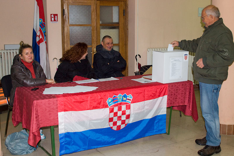Metković, 28.12.2014. - Birališta se uskoro zatvaraju, a Metković je u 16.30 i dalje imao odziv birača viši od državnoga prosjeka. Od 13.955 birača na 16 birališta glasovalo ih je 5.614 ili 40,23 %. Najviše u GKS-i i u Prudu (oko 47 %), a najmanje (oko 32 %) u Dubravici i na biračkome mjestu br. 9 u SŠ Metković koje obuhvaća birače donjega dijela ul. Petra Krešimira IV., Jaslina, Vrbovaca, Franje Asiškoga itd.