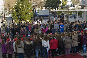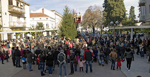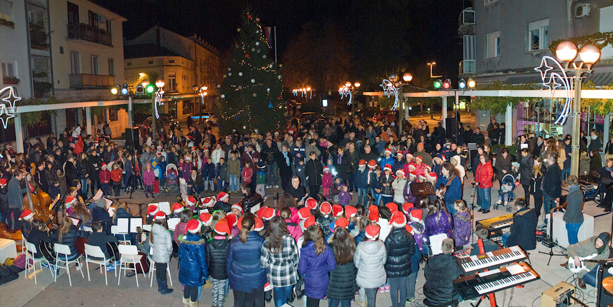 Metković, 24.12.2014. - Na Trgu kralja Tomislava sinoć je četvrti put održan prigodan božićni program na kojemu su nastupili KUD Metković, Dječji crkveni zbor Župe sv. Ilije, Dječji crkveni zbor Župe sv. Nikole, Nikica Ilić i Maja Jerković, Klapa Žveljarin, Prima Vista, Zvjezdice – Župa sv. Ilije i Mandolinski orkestar KUD-a Metković.