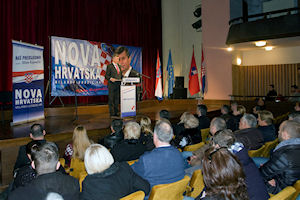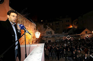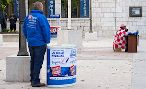 Metković, 3.12.2014. - Danas je na kandidacijskome predsjedničkom meniju na Trgu Kralja Tomislava bila relativno bogata ponuda izbornih slogana: od 'Za bolju Hrvatsku' preko 'Za bolju Hrvatsku i boljitak Neretve' do 'Nova Hrvatska slobodnih i hrabrih ljudi'.