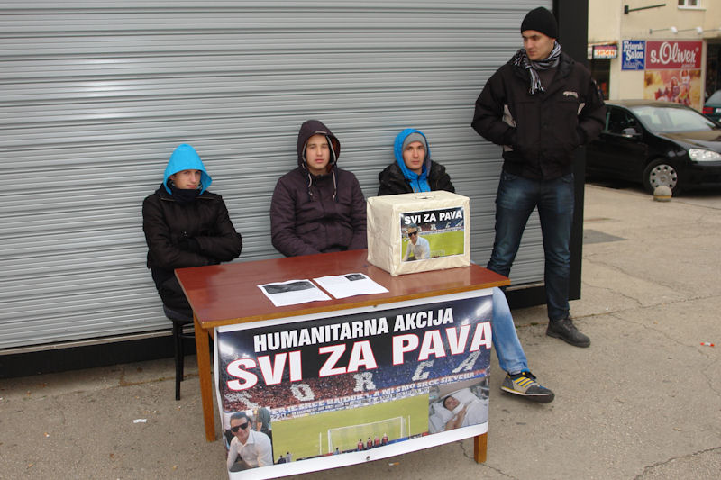 9.1.2015. - Članovi metkovske Torcide prije nekoliko su se dana priključili humanitarnoj akciji Svi za Pava! koju su na Facebooku pokrenuli prijatelji teško stradaloga Dubrovčanina Pava Hađije (24). Akcija se provodi na raskrižju ulica Matice hrvatske i Ante Starčevića.