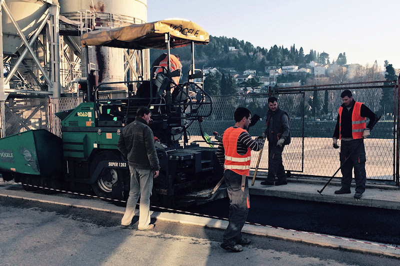 14.1.2015. - Mukama po Hebrangovoj uskoro bi trebao biti kraj. Nakon nužnih popravaka prethodno izvedenih radova, danas je asfaltirano parkiralište, a sutra bi na kolnik trebao biti položen asfaltni međusloj kojim će se ispraviti krivo izvedeni nagibi. Nakon toga slijedi završni, habajući sloj.