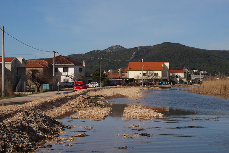 24.1.2015. - Premda je vodostaj Neretve noćas bio preko 230 cm, situacija se smiruje, a i vode desnoga zaobalja opadaju pa smo danas na Glibuši zatekli puno bolje stanje. Crpka Neretvanskoga sliva radila je još i danas i uočljiva je puno niža razina vode u branjenome području.