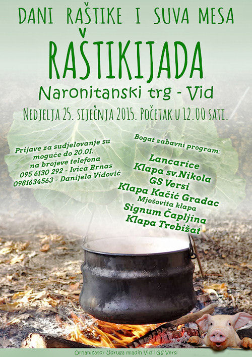 26.1.2015. - Druga vidonjska Raštikijada pokazala je da je od dobre zamisli do tradicije kratak put pa smo sigurni da će i dogodine u Vidu biti barem isto tako dobro kao i ove godine. Na Naronskome trgu „u sjeni“ Arheološkoga muzeja Narona kuhalo se jelo koje su, valjda, zimi cijenili i stari Rimljani.