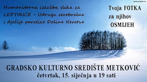 13.1.2015. - Udruga mladih Kolektiv poziva na otvorenje druge Humanitarne izložbe Tvoja fotka za njihov osmijeh što će se održati u Gradskom kulturnom središtu Metković u četvrtak, 15. siječnja s početkom u 19 sati. Prihod od prodaje fotografija namijenjen je Udruzi Leptirići koja skrbi o djeci iz doline Neretve oboljeloj od cerebralne paralize.