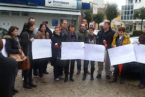 24.1.2015. - Članovi Udruge Franak jučer su se u 15 sati okupili ispred Hypo banke, otkud su krenuli u mirni prosvjed obišavši poslovnice svih banaka u Metkoviću i pred njima paleći svijeće za žrtve, kako su rekli, lihvarskih kredita.