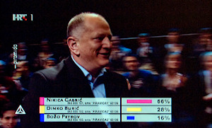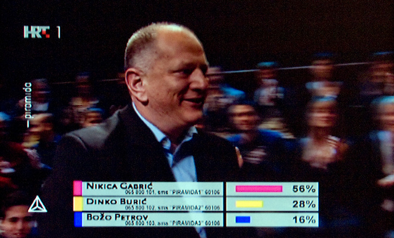 3.3.2015. - U doktorskome okršaju u HRT-ovoj Piramidi večeras se, prema glasovima gledatelja, najbolje snašao dr. Nikica Gabrić koji je dobio 56 % glasova.