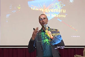 5.3.2015. - Na poziv svoga bivšega studenta Mislava Gluščevića, sinoć je u Galeriji GKS-a dr. sc. Ivica Puljak, redoviti profesor fizike na splitskome FESB-u i dugogodišnji koordinator tima znanstvenika na ženevskom CERN-u, održao zanimljivo predavanje o svemiru koje se sastojalo iz dvaju dijelova.
