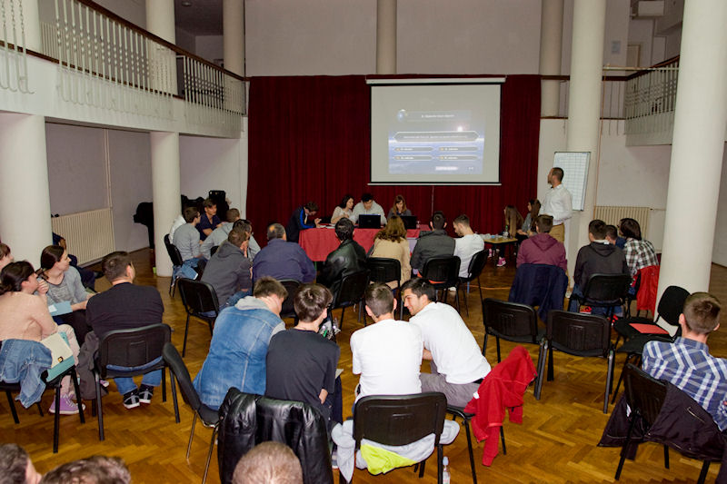 Metković, 30.4.2015. - Sinoć se MTKviz prvi put održao u Galeriji GKS-a i na njemu je pred prilično brojnom publikom nastupilo čak 13 natjecateljskih timova. Nakon uzbuđenja u kategoriji Završni udarac najboljim se pokazao debitantski tim Godrunkyouarehome u sastavu Filip Medak, Luka Jeramaz, Ivan Pavlović i Marko Andrić, koji je osvojio 814 bodova.