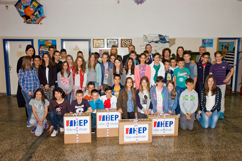 Metković, 27.4.2015. - Danas su na maloj svečanosti u OŠ Stjepana Radića u Metkoviću predstavnici HEP-a i Narodnoga radija Školi uručili četiri osobna računala koja su na nagradnoj igri Za naše male genijalce osvojili učenici VI. A i VI. B razreda te škole.
