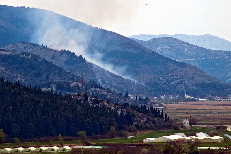 Metković, 8.4.2015. - Iznad Mliništa jutros je buknuo požar koji je zahvatio oko 10 h mlade šume i nastavio se širiti prema vrhu brda na kojemu je stara šuma što je preživjela katastrofalni požar od prije osam godina.