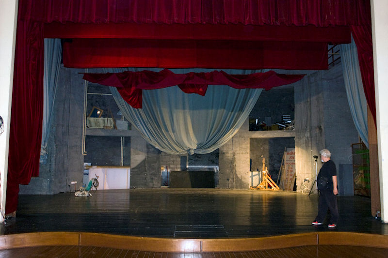 Metković, 29.4.2015. - Pozornica u kazališnoj dvorani GKS-a uskoro će osvanuti u novome ruhu. Stari plavi horizont bit će zamijenjen novim, a uređuje se pod pozornice.