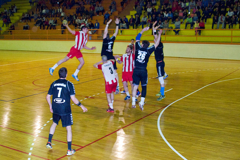 Metković, 27.4.2015. - Sinoć je u Gradskoj športskoj dvorani u Metkoviću odigrana prvenstvena utakmica 24. kola I. HRL. u kojoj je RK Metković 1963 rezultatom 28 : 24 pobijedio do tada vodeći RK Medveščak iz Zagreba.
