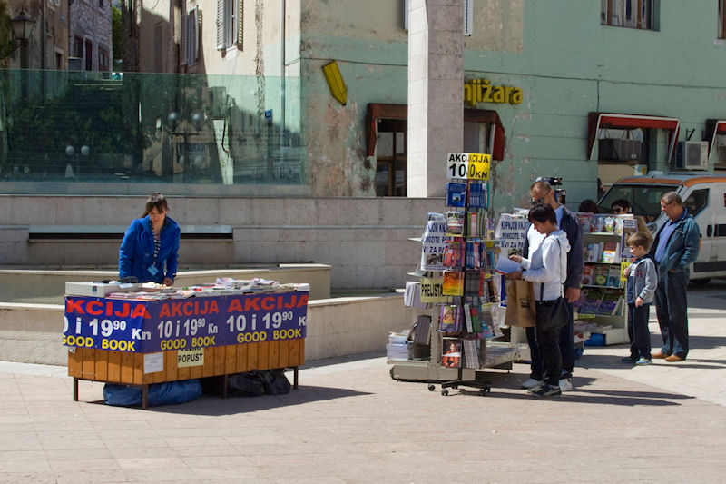 Metković, 29.4.2015. - Na Trgu kralja Tomislava jutros je otvoren Sajam knjiga Good book na kojemu se knjige prodaju vrlo povoljno, mnoge i za 10 kn. Osim što jeftino možete kupiti knjigu, njezinom kupnjom uključujete se u humanitarnu akciju Svi za Pava. Sajam će trajati sljedećih deset dana.