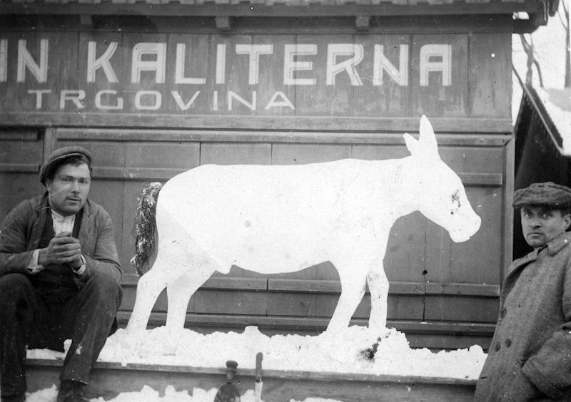 Metković, 7.4.2015. - Na današnji dan., 7. travnja 1929. u Metkoviću je osvanulo 30 cm snijega. O tome svjedoči fotografija iz albuma pok. Jakova Jelaša na kojoj su on i pok. metkovski marangun Ante Volarević fotografirani s magarcem što su ga njih dvojica napravili od snijega.