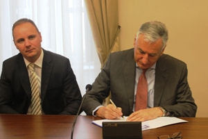Metković, 30.4.2015. - Župan Nikola Dobroslavić potpisao je Ugovor o poslovnoj suradnji na realizaciji programa Kreditom do uspjeha 2014. - Mjera 1. - Kreditom do konkurentnosti s osam poslovnih banaka. Dubrovačko-neretvanska županije sudjeluje u provedbi Programa gdje raspolaže sa 12.000.000 kuna kreditnog potencijala.
