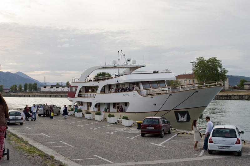 Metković, 4.5.2015. - Minikruzer Thurgau Dalmatia jučer je uplovio u Metković pa je tim povodom svečanim programom otvorena sezona nautičkoga turizma u našemu gradu. U četvrtoj sezoni uplovljavanja u Metković taj brod agencije Thurgau Travel, koja je specijalizirana za riječna krstarenja, do 17. listopada u 25 navrata dovest će nam oko 700 turista.