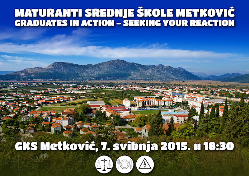 Metković, 6.5.2015. - Maturanti Srednje škole Metković pozivaju vas sutra u 18.30 u Galeriju GKS-a na zanimljivo događanje koje će uz pomoć svoje profesorice Goranke Ivanković prirediti učenici 4. J (upravni referenti), 3. J (kuhari) i 4. D (elektrotehničari) i koje su nazvali „Maturanti u akciji traže vašu reakciju“.