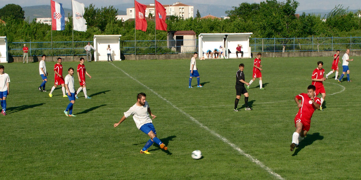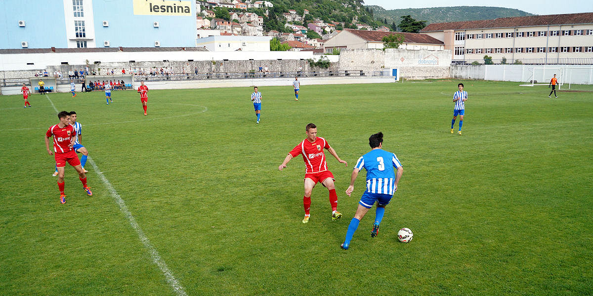 Metković, 31.5.2015. - U utakmici 33. kola III. HNL jug jučer je NK Neretva na svome Igralištu Iza Vage pred dvjesto pedesetak gledatelja uvjerljivo s 3:1 pobijedila NK Zmaj iz Blata u čijem sastavu nije nastupilo više standardnih igrača.