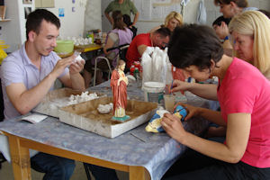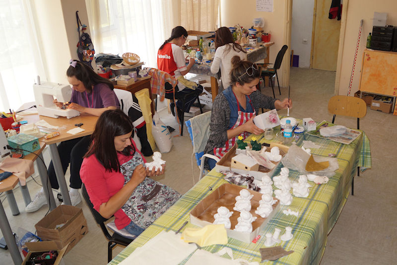 Metković, 29.5.2015. - Prvoga Dana otvorenih vrata u Udruzi osoba s invaliditetom Prijatelj zatekli smo njezine članove u svakodnevnim aktivnostima. Jedni su bili za šivaćim strojem, drugi su izrađivali gipsanje figurice, a treći su ih ukrašavali. Možete ih posjetiti i danas od 7 do 15 sati u njihovim prostorijama u Ulici Ante Stračevića.