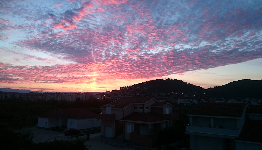 Metković, 1.5.2015. - Pogled na istok-sjeveroistok, kakav je jučer u 5.38, ili sedam minuta prije izlaska sunca, sa svoga balkona imao autor fotografije Pero Štrbe, nagnao nas je na pomisao što je tamo otkuda nam sunce ima izaći.