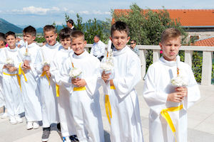 Metković, 4.5.2015. - Jučer je u Župi sv. Nikole Biskupa šezdeset prvopričesnica i prvopričesnika pristupilo prvoj svetoj pričesti, sakramentu koji im je tijekom svečane euharistije u župnoj crkvi sv. Nikole podijelio župnik don Senko Antunović.