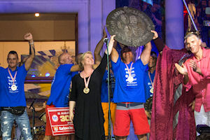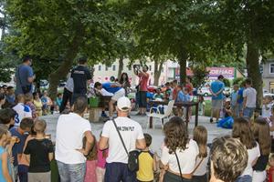 8.8.2015. - Jučer je kiša omela održavanje viteških igara za djecu u Gradskome parku, ali su predvečer održane igre za odrasle, koji su se natjecali i vađenju jabuka iz maštela, obaranju ruke, bacanju potkove, trčanju u vrećama i potezanju konopa.
