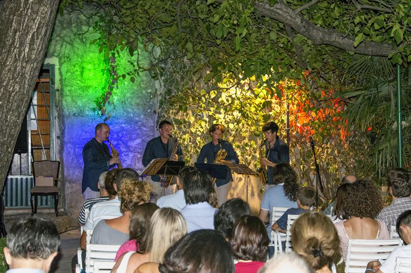 12.8.2015. - Četvorica mladih saksofonista, diplomanata Muzičke akademije Sveučilišta u Zagrebu, sinoć su se u dvorištu obitelji Barbir na Verajinu guvnu Metkovcima predstavili kao Papandopulo kvartet.