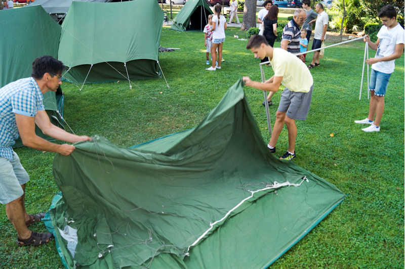 7.8.2015. - Premda se to trebalo dogoditi sinoć, gusarski tabor u Gradskome parku zbog jučerašnje kiše podiže se tek jutros. Poslijepodne će ga zaposjesti stotinjak malih neretvanskih gusara koji će u njemu i prespavati. U sklopu II. Dana Neretvanske kneževine danas od 17 sati počinju viteške igre.