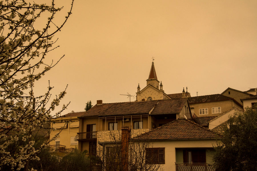 23.3.2016. - Ciklona Ivan, koja je nastala pred obalama sjeverne Afrike, postupno se produbljivala i premještala na istok, noseći u oblacima sitan pustinjski pijesak koji nam je dan obojao u žuto te uzrokovao prljavu kišu. Prema prognozama, vrijeme će se smirivati pa će na Veliki petak vjernici u procesije bez kišobrana. Jedino će možda trebati podebljati odjeću zapuše li (druga) marčana bura.