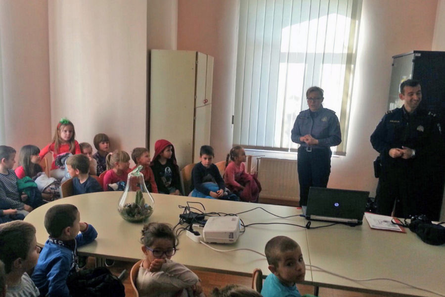21.3.2016. - Policijski službenici Policijske postaje Metković: Ivana Bajo za prevenciju i Mihovil Bokan za prometnu preventivu i sigurnost u cestovnom prometu prošloga su petka posjetili Središnji dječji vrtić u Metkoviću.