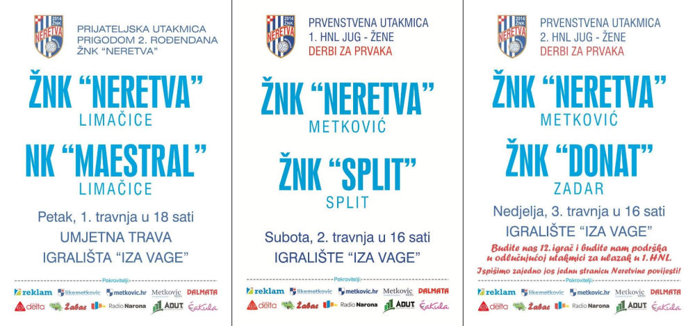 22.3.2016. - Nogometašice ŽNK Neretva u sklopu su priprema za proljetni dio prvenstva na Čapljinskim Bjelavama pobijedile bh. federalnog prvoligaša Čapljinu 3:0 pogodcima Govorko, Buntić i Terzić.