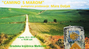 25.3.2016. - Mara Doljak je u Gradskoj knjižnici Metković održala putopisno predavanje Camino s Marom na kojemu je govorila o svome putovanju u španjolski Santiago de Compostela.