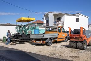 10.10.2016. - Kiša je prije nekoliko dana omela nastavak asfaltiranja Ulice Andrije Kačića Miošića, no pripreme se izvode bez obzira na vrijeme pa će se asfaltiranje nastaviti čim se podloga osuši. Nakon što je u toj ulici rekonstruiran cjevovod i izgrađen dio kolektora za oborinsku odvodnju cijela će ulica dobiti nov asfaltni sloj.