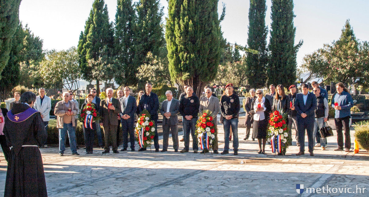 31.10.2016. - Povodom 1. studenoga, blagdana Svih svetih i Spomendana na metkovske branitelje poginule u Domovinskome ratu, jutros je na Gradskome groblju svetoga Ivana Nepomuka župnik fra Ante Bilokapić održao obred odrješenja njihovim dušama, a potom su pred Središnjim križem položeni vijenci i zapaljene svijeće.