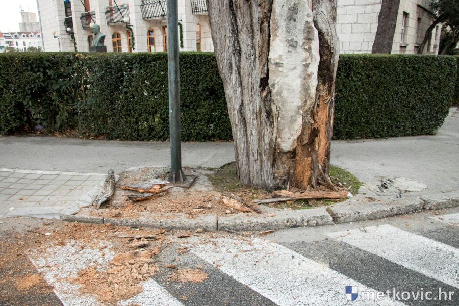 21.12.2016. - Čini se da je noćas nekomu u Ulici Stjepana Radića bilo preusko ili presklisko, možda i oboje. Ionako oštećeni stari čempres dobio je još jedan udarac.