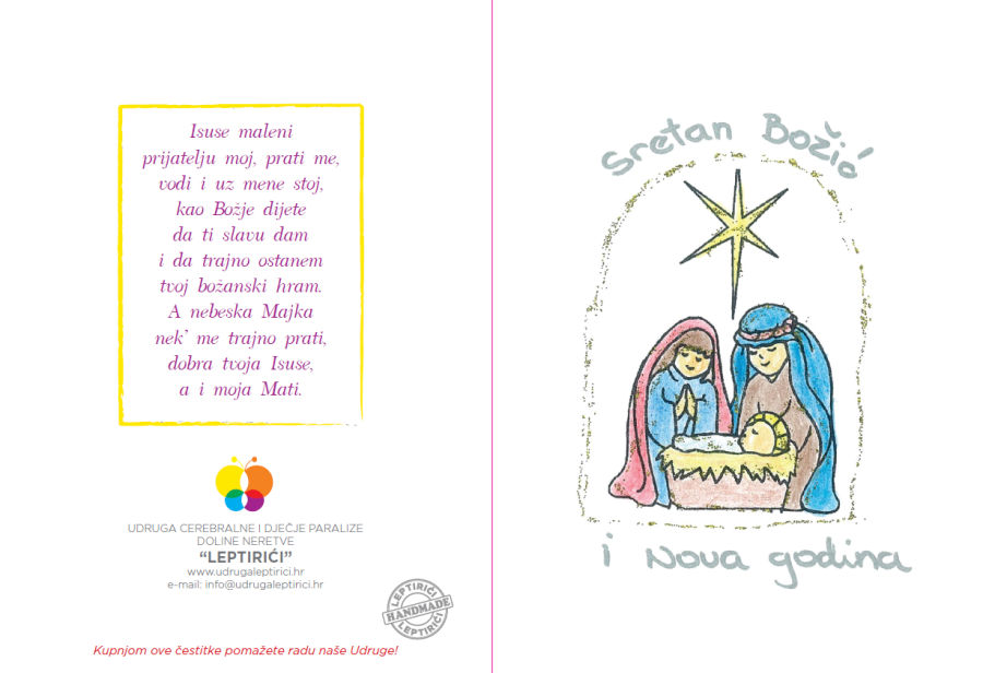 7.12.2016. - Udruga cerebralne i dječje paralize doline Neretve Leptirići tradicionalno u prosincu pokreće humanitarnu prodaju čestitaka pod nazivom Čestitajmo kao nekada.