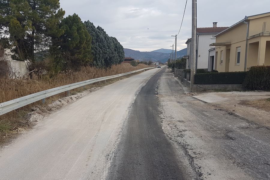 Metković, 31.1.2017. - Nakon što su završeni radovi na u sklopu izvođenja radova na rekonstrukciji vodoopskrbne mreže u Ulici sv. Franje Asiškoga, započelo se s polaganjem završnoga habajućeg sloja asfalta na kolniku.