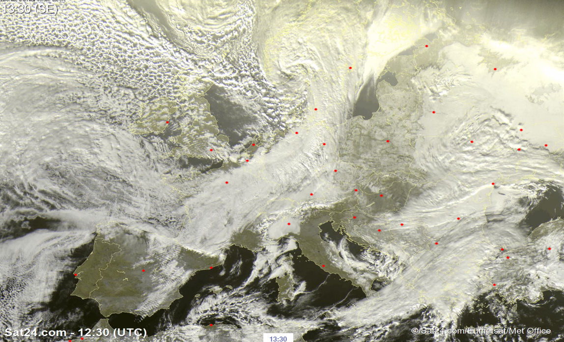 Metković, 11.1.2017. - Zalepršalo je nekoliko pahuljica, no ništa od snijega. Gornja satelitska fotografija Europe danas u 13:30 govori zašto.