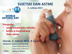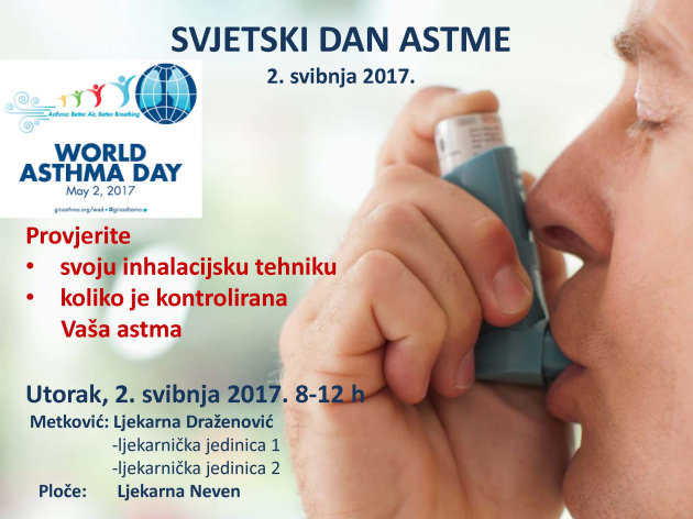 28.4.2017. - Povodom Svjetskog dana astme, koji se obilježava 2. svibnja, ljekarnički tim Ljekarne Draženović odlučio je, kao i prošle godine, organizirati javnozdravstvenu akciju.
