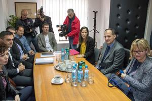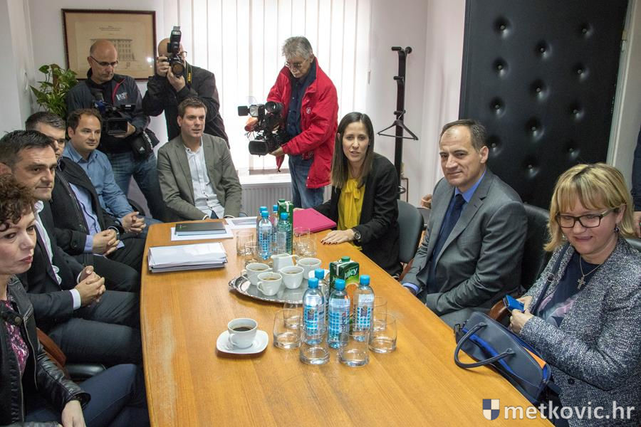 7.4.2017. - Ministar zaštite okoliša i energetike Slaven Dobrović danas je u uredu metkovske gradonačelnice Katarine Ujdur održao sastanak s gradonačelnicima, načelnicima i direktorima komunalnih poduzeća neretvanskih gradova i općina, kako bi se bolje upoznao s problematikom vezenom uz okolišne teme, ponajprije s gospodarenjem otpadom i vodoopskrbom. Za izjave smo zamoli ministra Dobrovića i gradonačelnicu Ujdur.