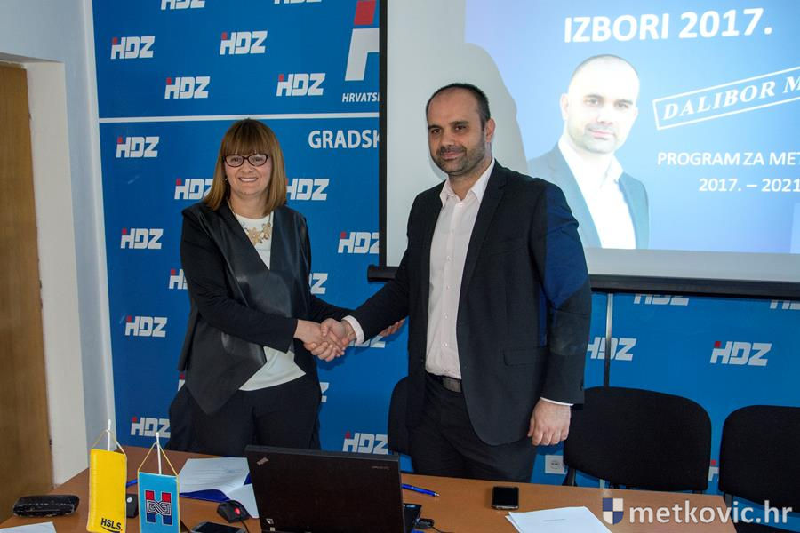 29.4.2017. - GO HDZ-a Metković jučer je u svojim stranačkim prostorijama održao konferenciju za medije na kojoj je potpisan koalicijski sporazum o zajedničkom izlasku na lokalne izbore između HDZ-a i HSLS-a te je ujedno predstavljen plan koji se tiče gospodarstva, prometa i komunalne infrastrukture. Koalicijski sporazum uime HDZ-a potpisao je Dalibor Milan, a uime HSLS-a to je učinila Miljenka Manenica.