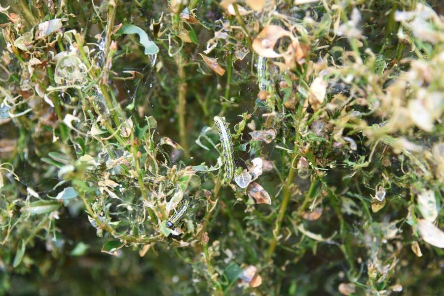 5.4.2017. - Na području županije primijećena je pojava prve generacije šimširova moljca (Cydalima perspectalis) koji izaziva golobrst na grmovima šimšira (Buxus spp.). Prisutnost štetnika vidljiva je po zapredenim nitima na vrhovima izboja u kojima se nalaze odrasle gusjenice. Mlade gusjenice su zeleno-žute boje s crnom glavom, a odrasle zelene i s debelom crnom i tankim bijelim prugama po sebi te crnim točkama na leđnoj strani.
