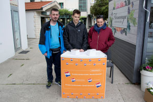 25.4.2017. - U znak solidarnosti s građanima koji izloženi svim vremenskim uvjetima u redu čekaju ispred PP Metković, dvojica studenta Pomorskoga fakulteta Ivan Krtalić i Filip Franičević priredili su im okrjepu sendvičima i sokovima te im čekanje uljepšavaju glazbom.