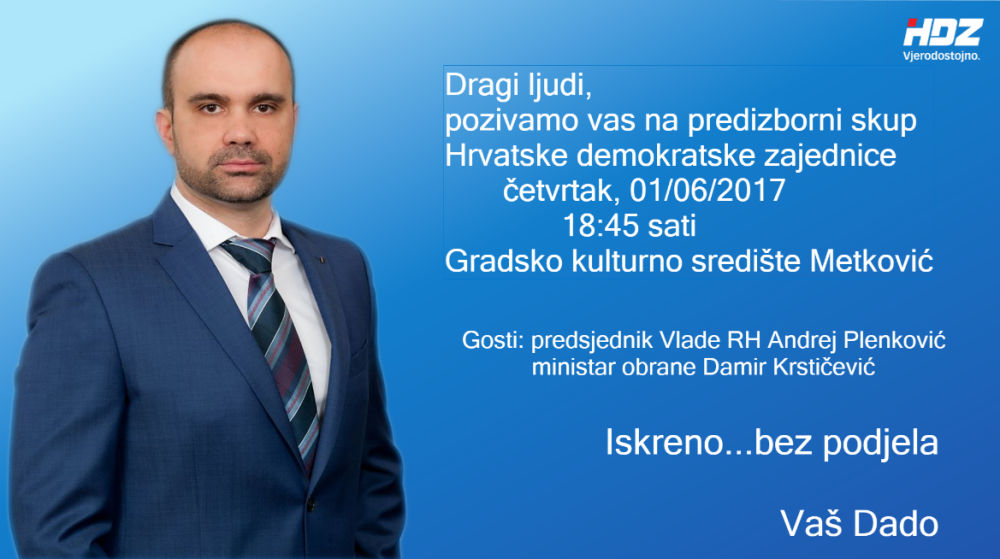 Metković, 31.5.2017. - GO HDZ-a Metković sutra u GKS-u održava predizborni skup na kojemu će gosti biti premijer Andrej Plenković i ministar obrane Damir Krstičević.